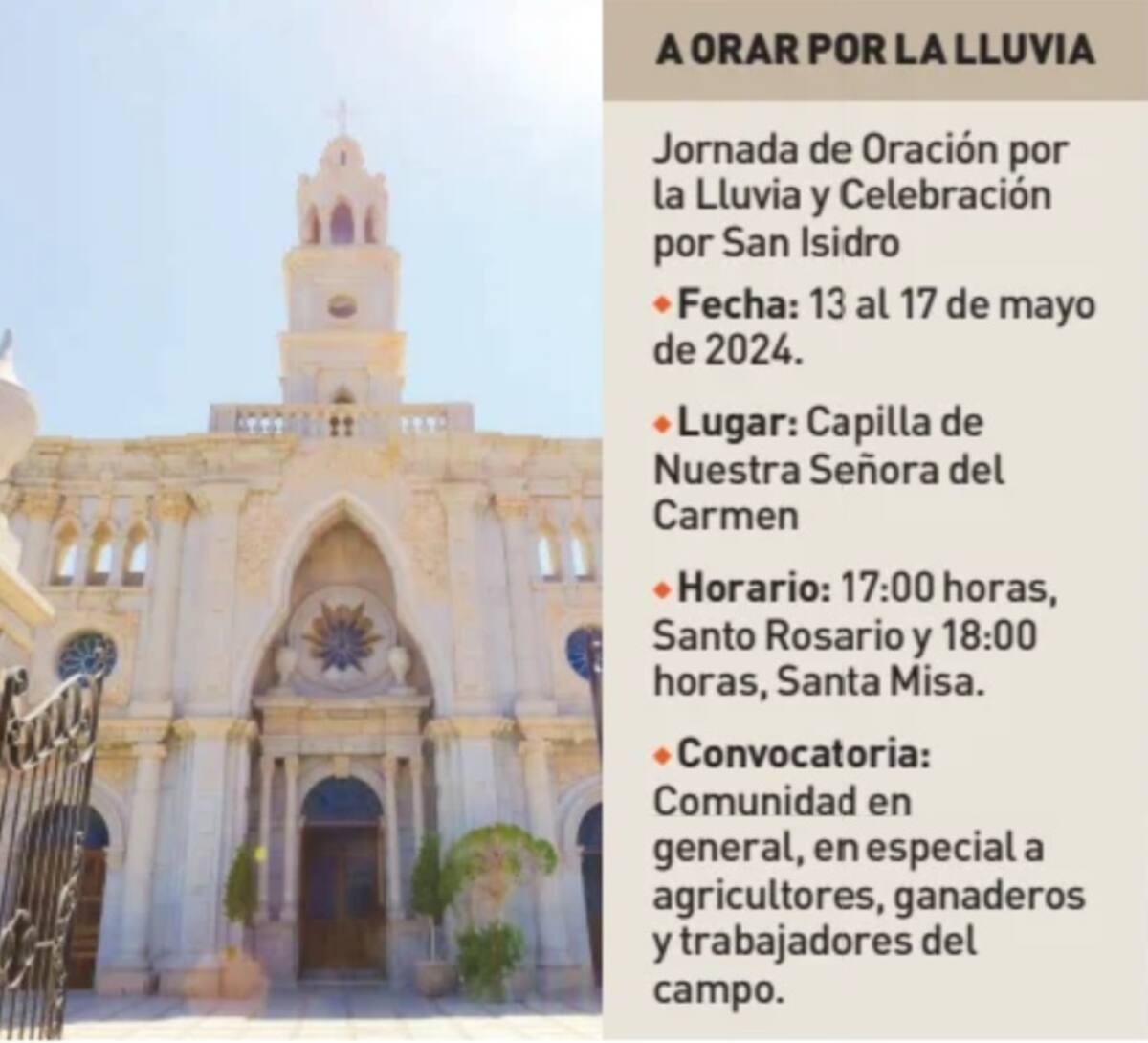 A las 17:00 horas se iniciará con el Santo Rosario y posteriormente se celebrará la Santa Misa a favor de las lluvias, a las 18:00 horas.