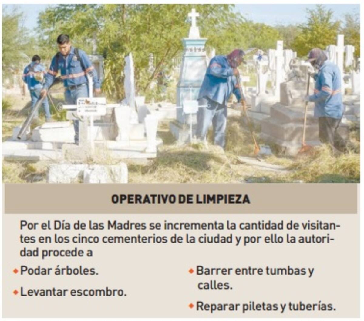 A través de un comunicado se indica que debido a que el 10 de mayo y el fin de semana cercano a este día, miles de personas aprovechan para visitar los cementerios de la ciudad, el Ayuntamiento de Hermosillo inició hace varias semanas su preparación.