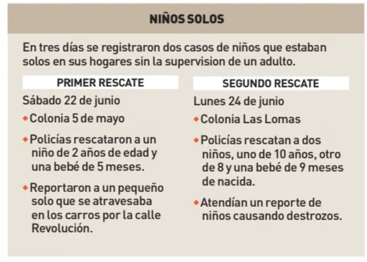 El caso más reciente se registró a las 12:26 horas del lunes 24 de junio, en un domicilio ubicado en la colonia Las Lomas, al Sur de la ciudad, donde se encontraron a tres niños de 10 y 8 años, así como una bebé de nueve meses de nacida.