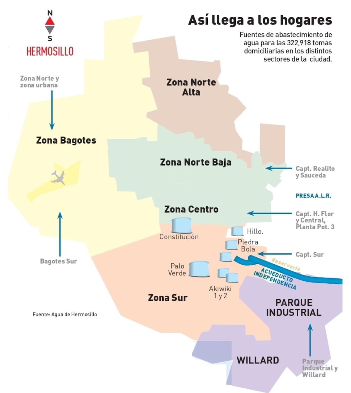 El manejo del vital líquido en Hermosillo está a cargo del Gobierno municipal a través de Agua de Hermosillo (Aguah) desde 2002, año en que fue transferido por el Estado.