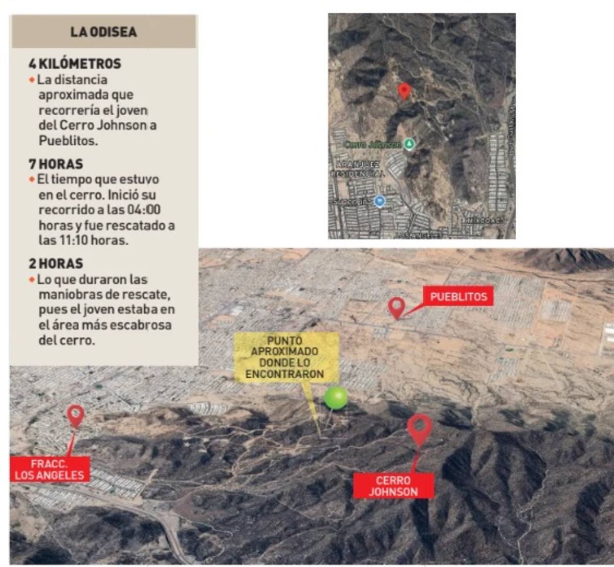 HERMOSILLO, Sonora.- Tras lograr el rescate de un hombre que intentaba cruzar del fraccionamiento Los Ángeles a Pueblitos por el Cerro Johnson, Bomberos de Hermosillo informó que al senderista se le dificultó pedir ayuda ya que la zona del cerro en donde se encontraba no hay señal telefónica y tuvo que buscar un lugar para la llamada y pedir apoyo al 911.