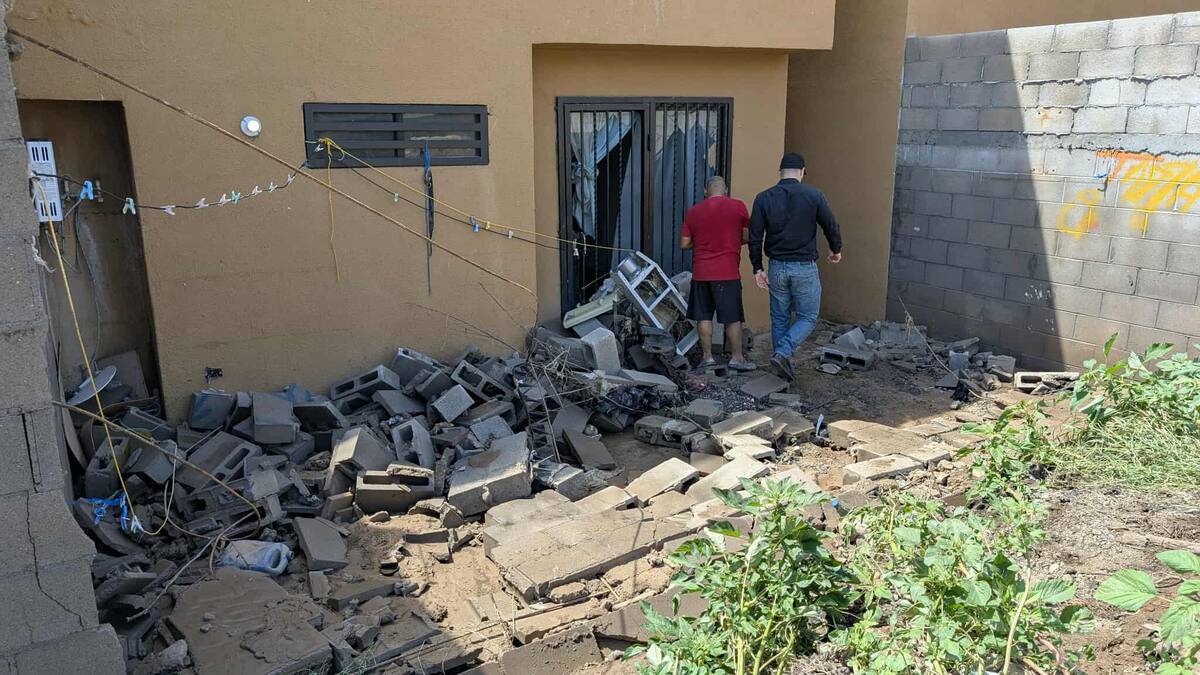 HERMOSILLO, Sonora.- — Una mujer de 60 años y su hijo de 29 permanecen en el segundo nivel de una vivienda ubicada en la colonia Villas de San Lorenzo, luego de que la lluvia del 17 de agosto provocara el colapso de la barda trasera.