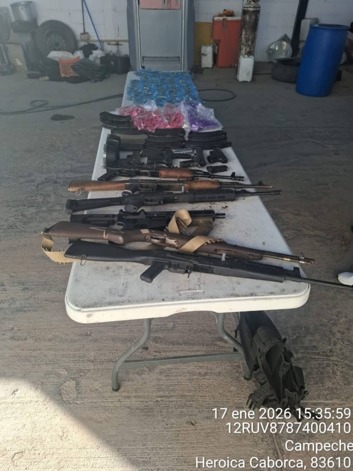 HERMOSILLO, Sonora; 18 de enero de 2026 — Como resultado de las acciones coordinadas de la Mesa Estatal de Seguridad, personal de la Guardia Nacional, en coordinación con autoridades de los tres órdenes de gobierno, brindó apoyo operativo al Ejército Mexicano en el municipio de Pitiquito, logrando el aseguramiento de armamento, presunto narcótico y la detención de siete personas.