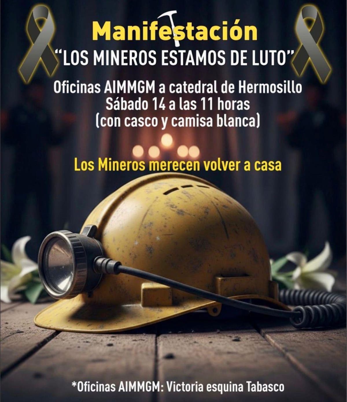 El gremio minero en Sonora llama a manifestación pacífica y acto religioso para exigir justicia, seguridad y el regreso de los trabajadores desaparecidos