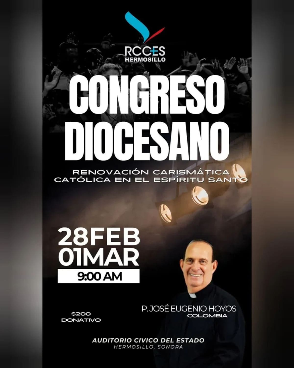 HERMOSILLO — La Renovación Carismática Católica en el Espíritu Santo (Rcces) invita a la comunidad de Hermosillo a vivir un encuentro con Dios en el Congreso Diocesano que se llevará a cabo los próximos 28 de febrero y el 1 de marzo.