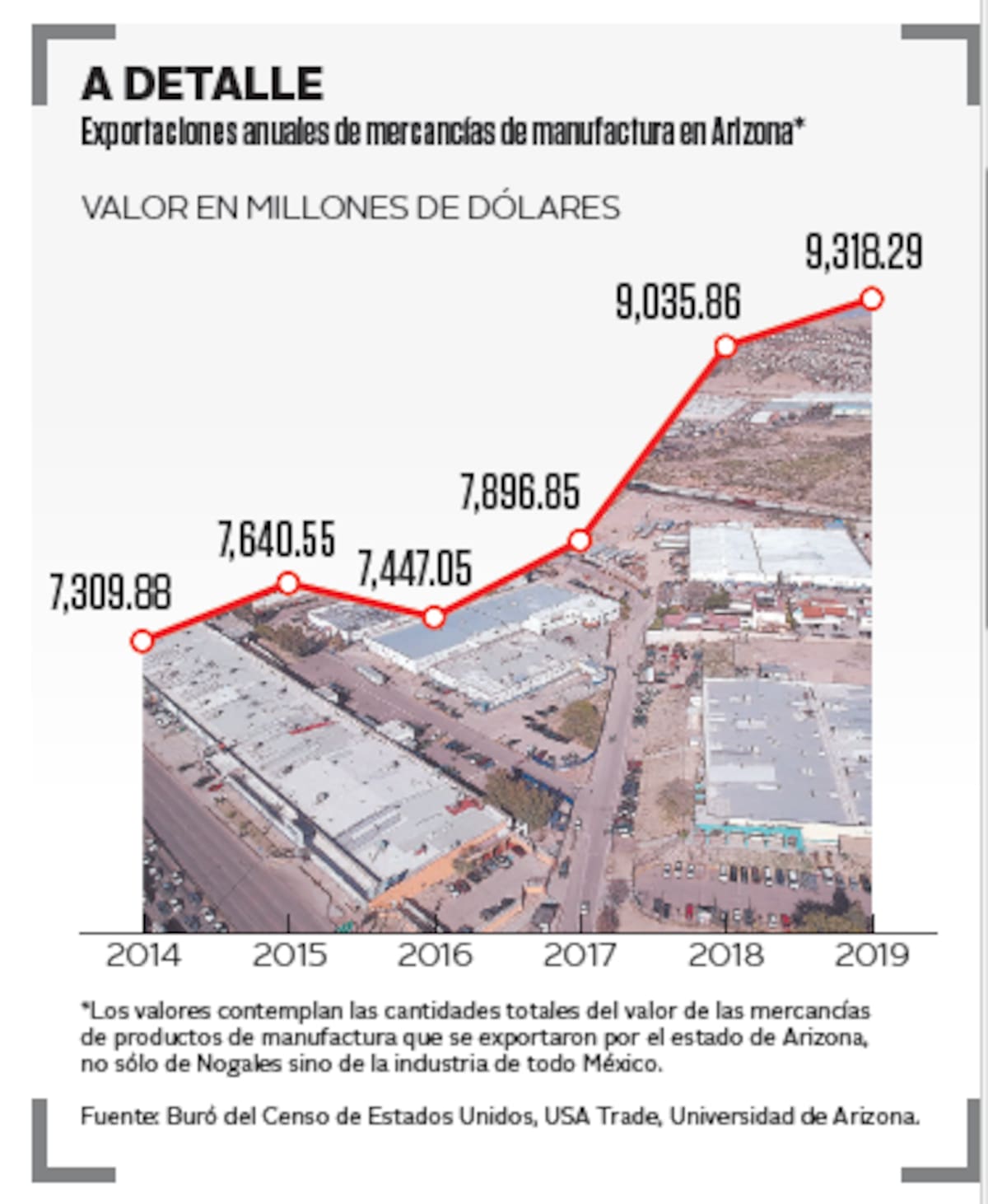 México es el principal origen de exportaciones de productos de manufactura a través de los puertos fronterizos de Arizona, y sin duda la industria de Nogales juega un papel preponderante.