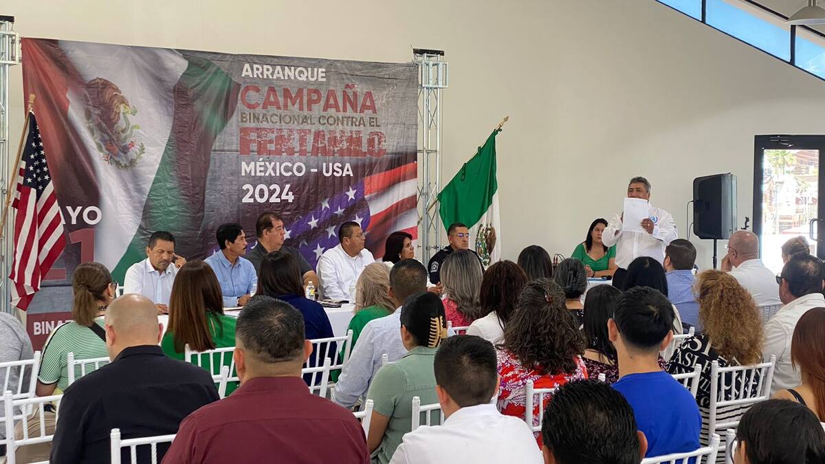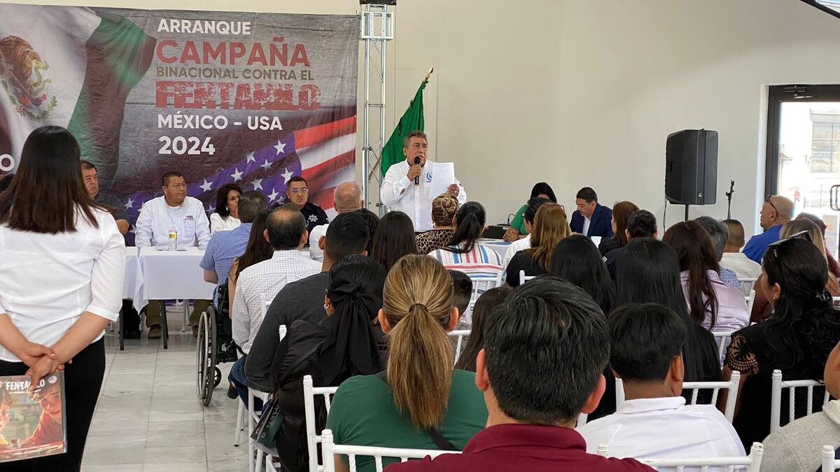 NOGALES.- Con la finalidad de abatir el trasiego y consumo de fentanilo; las autoridades de salud y educación, en coordinación con las dedicadas a la prevención de las adicciones, pusieron en marcha la campaña binacional México-Estados Unidos, contra dicha droga, este martes.