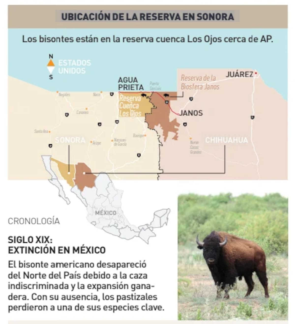 - Un grupo de 23 bisontes fue reintroducido en la Reserva de la Biosfera Janos, tras ser trasladados desde Dakota del Sur, Estados Unidos.
