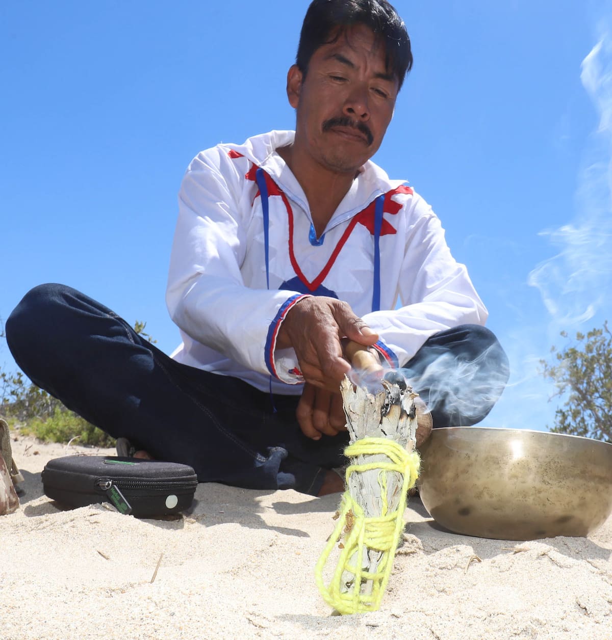 Punta Chueca, Sonora.- El chamán comcáac golpea con un marro un tazón de metal. Su sonido es largo y pasa de fuerte a débil conforme corren los segundos. Antes encendió salvia cuyo humo purifica el ambiente para el ritual que está a punto de realizar.