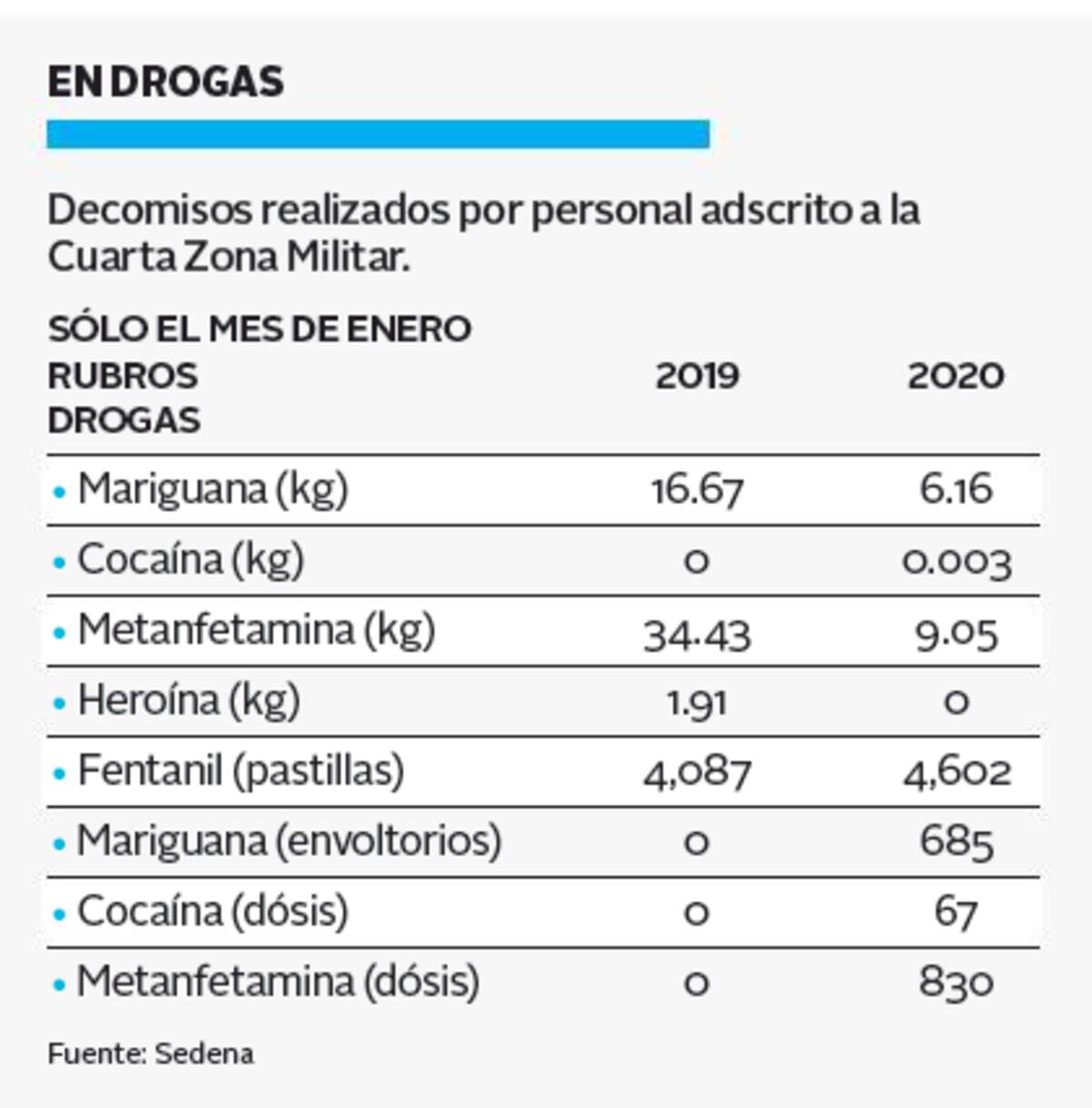 HERMOSILLO, Sonora.- La droga que más interesa al narco por las ganancias que deja es el fentanilo, por eso la mariguana, que a diferencia de años anteriores cuando se encontraba en grandes cantidades, ahora ya no se trafica, destacó Cruz Isaac Muñoz Navarro, comandante de la Cuarta Zona Militar.