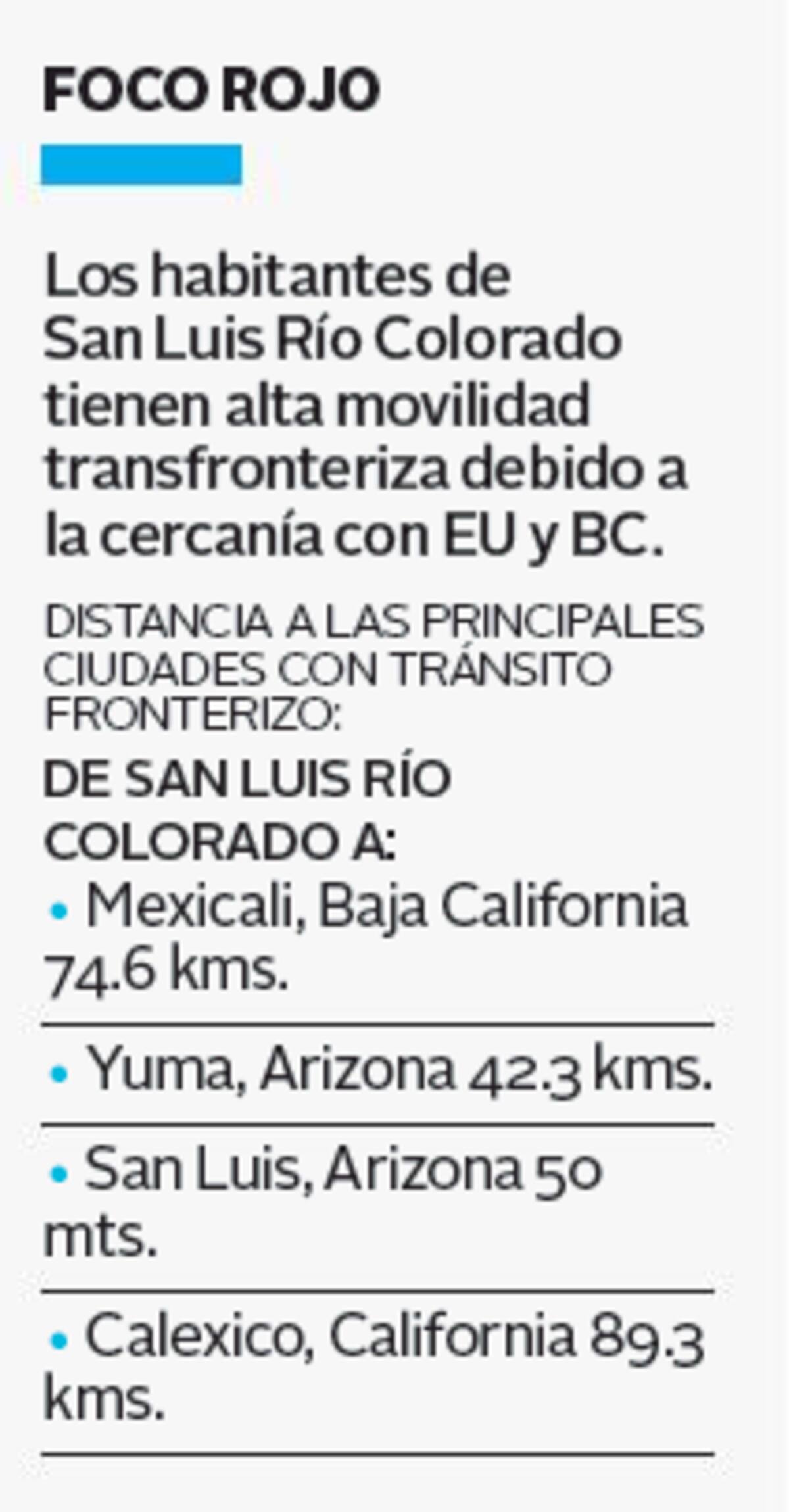 HERMOSILLO, Sonora.- La dinámica poblacional transfronteriza de San Luis Río Colorado, donde a diario miles de personas cruzan a laborar a ciudades de Arizona y California en Estados Unidos y a Mexicali, Baja California, se considera el principal factor para el aumento de contagios en esa población.