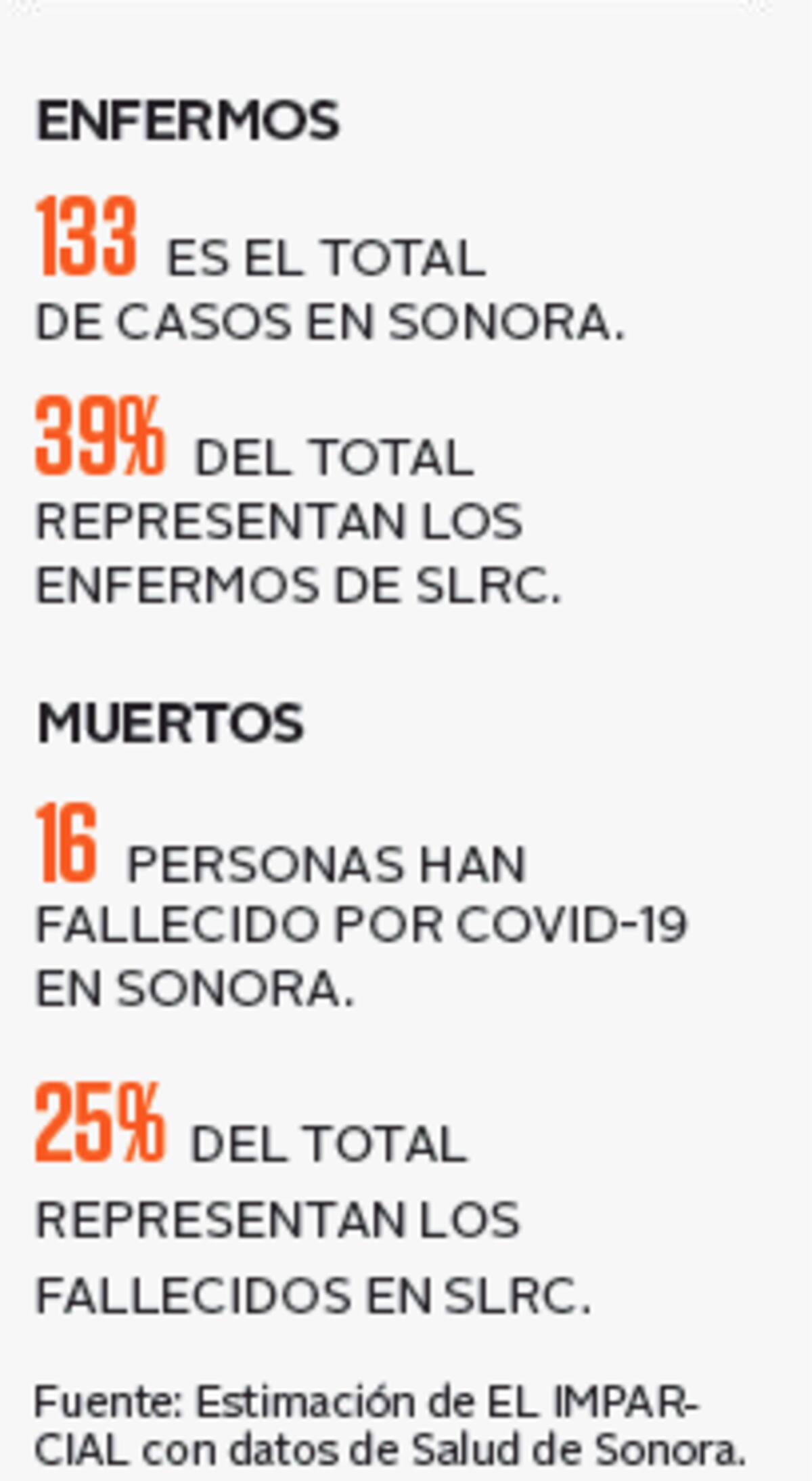 Con 58 casos, el 39% del total de las personas infectadas en Sonora por Covid-19, este Municipio enfrenta el mayor número de enfermos en la entidad. Del total de fallecidos, el 25% ocurrieron en SLRC, que representa cuatro de 16.