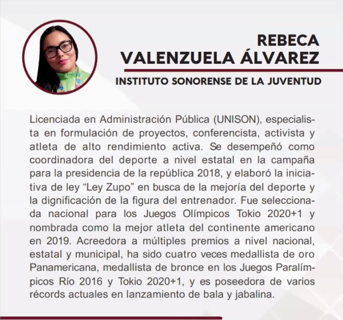 - Instituto Sonorense de la Juventud, Rebeca Valenzuela.