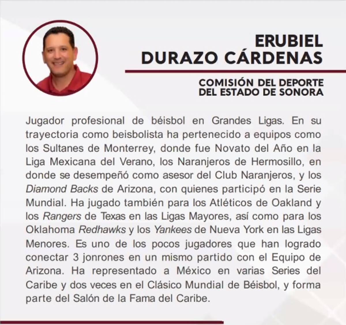 - Comisión del Deporte del Estado de Sonora, Erubiel Durazo.