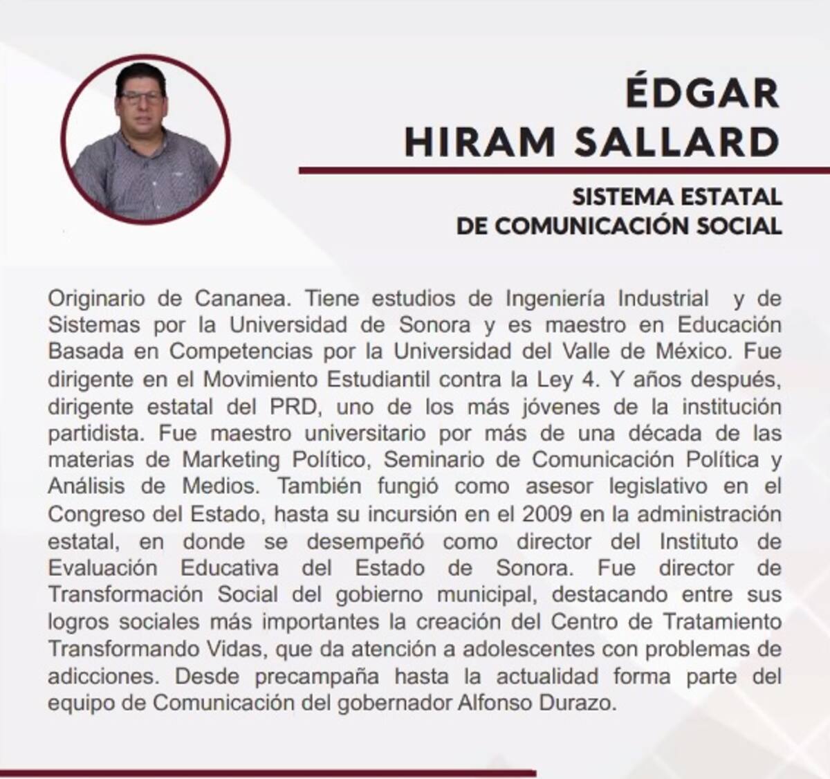 Edgar Sallard como coordinador del Sistema Estatal de Comunicación Social que integrará Telemax, Radio Sonora y la coordinación de Comunicación Social.
