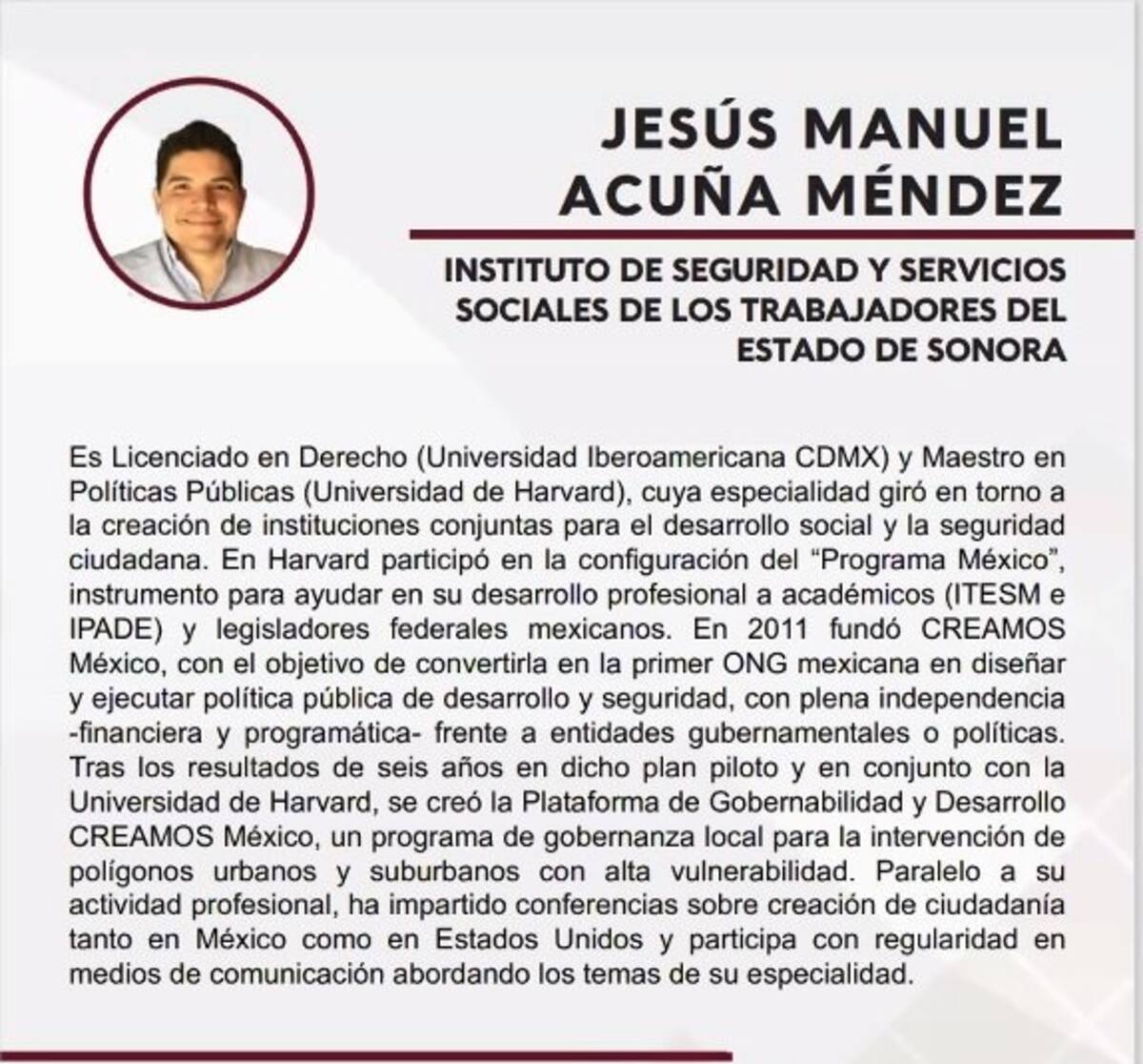 - Instituto de Seguridad y Servicios Sociales de los Trabajadores del Estado de Sonora, Jesús Acuña Méndez.