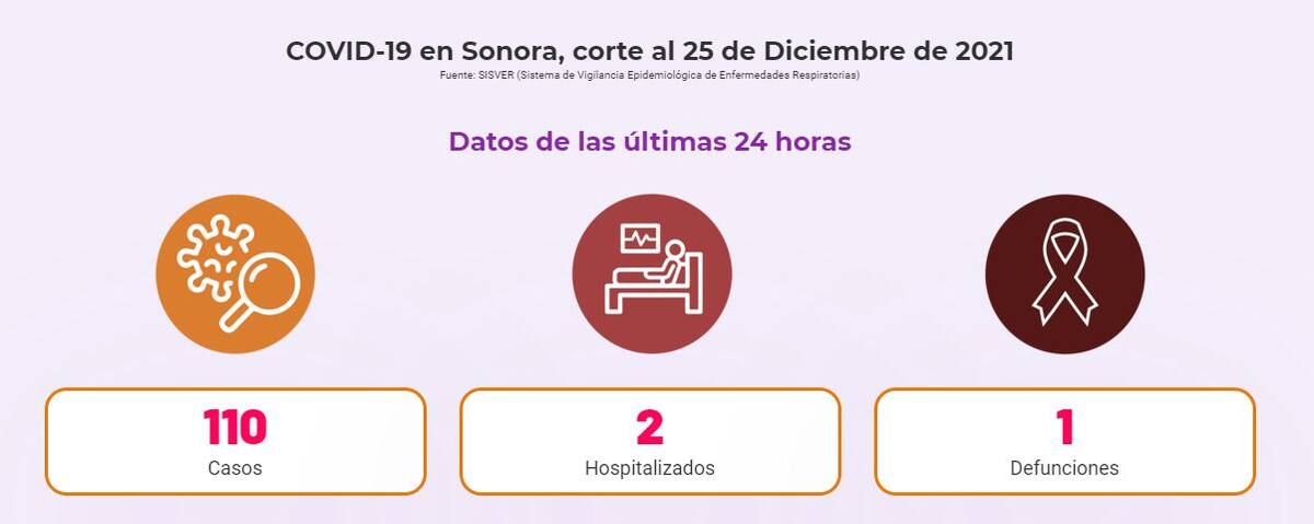 Covid en Sonora: Reportan 110 casos y una defunción este 25 de diciembre
