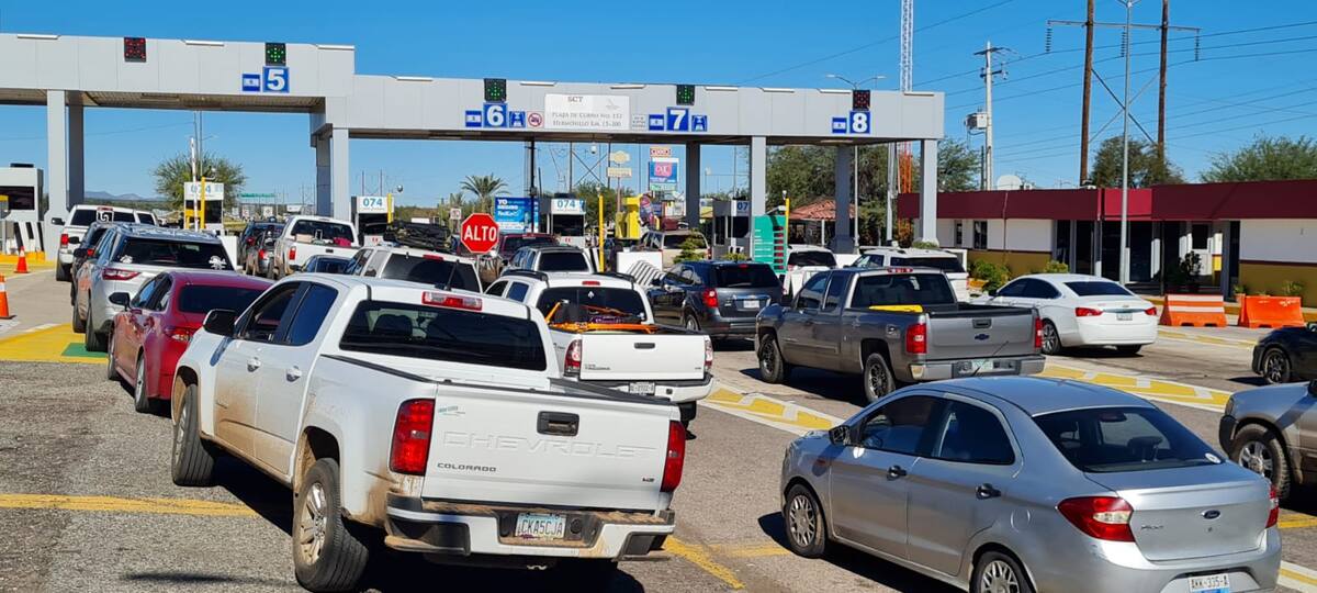Fuentes oficiales informaron que a partir de las 06:00 horas de ayer comenzaron a llegar cientos de carros con placas de algún estado americano con rumbo a la frontera Norte a la caseta de peaje de Hermosillo.