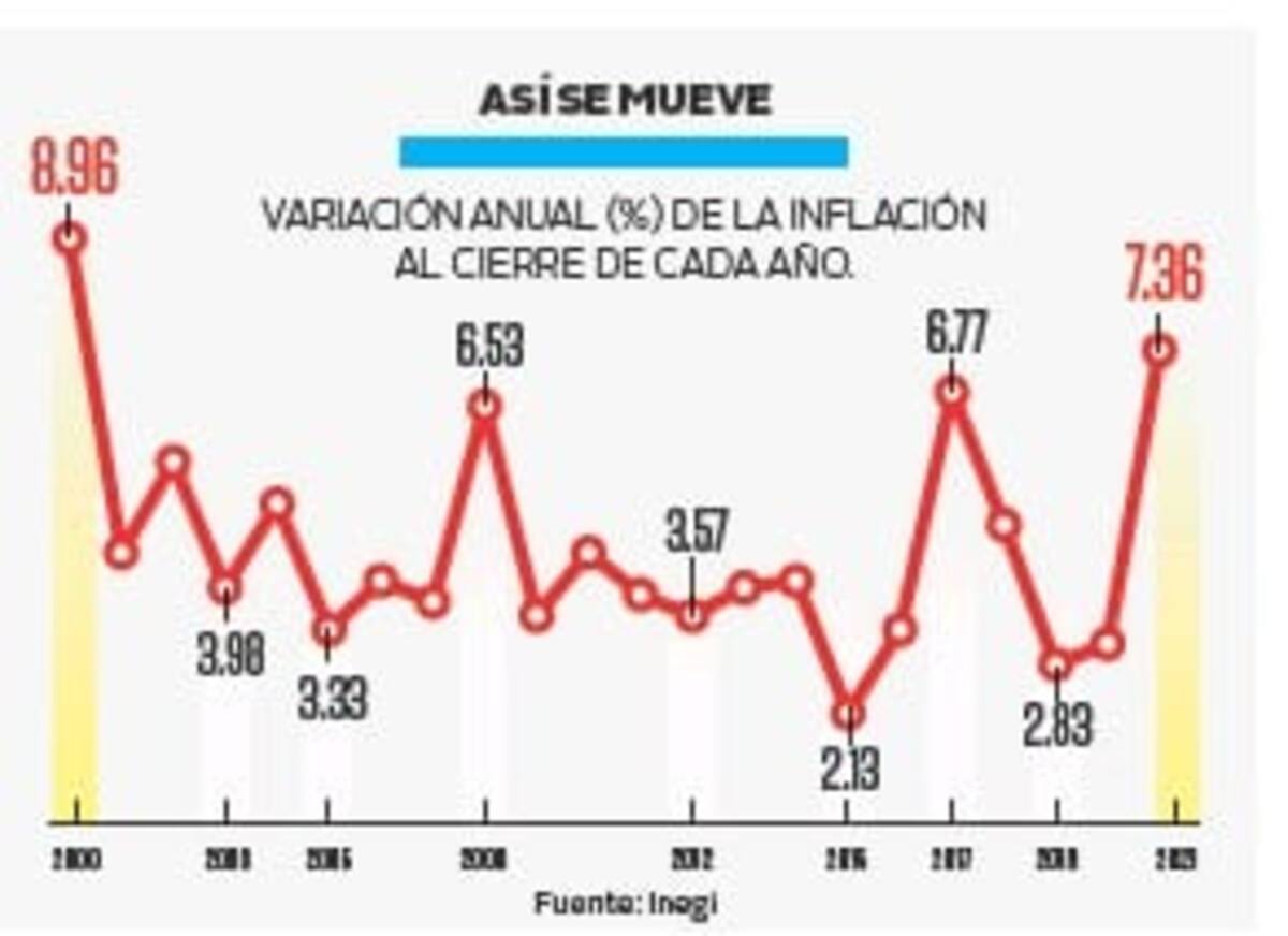 HERMOSILLO, Sonora.- México cerró en 2021 con una tasa de inflación anual de 7.36%, la más alta desde 2001, y fueron las alzas en los precios de los alimenticios, bebidas y tabaco los que más incidieron en este repunte.