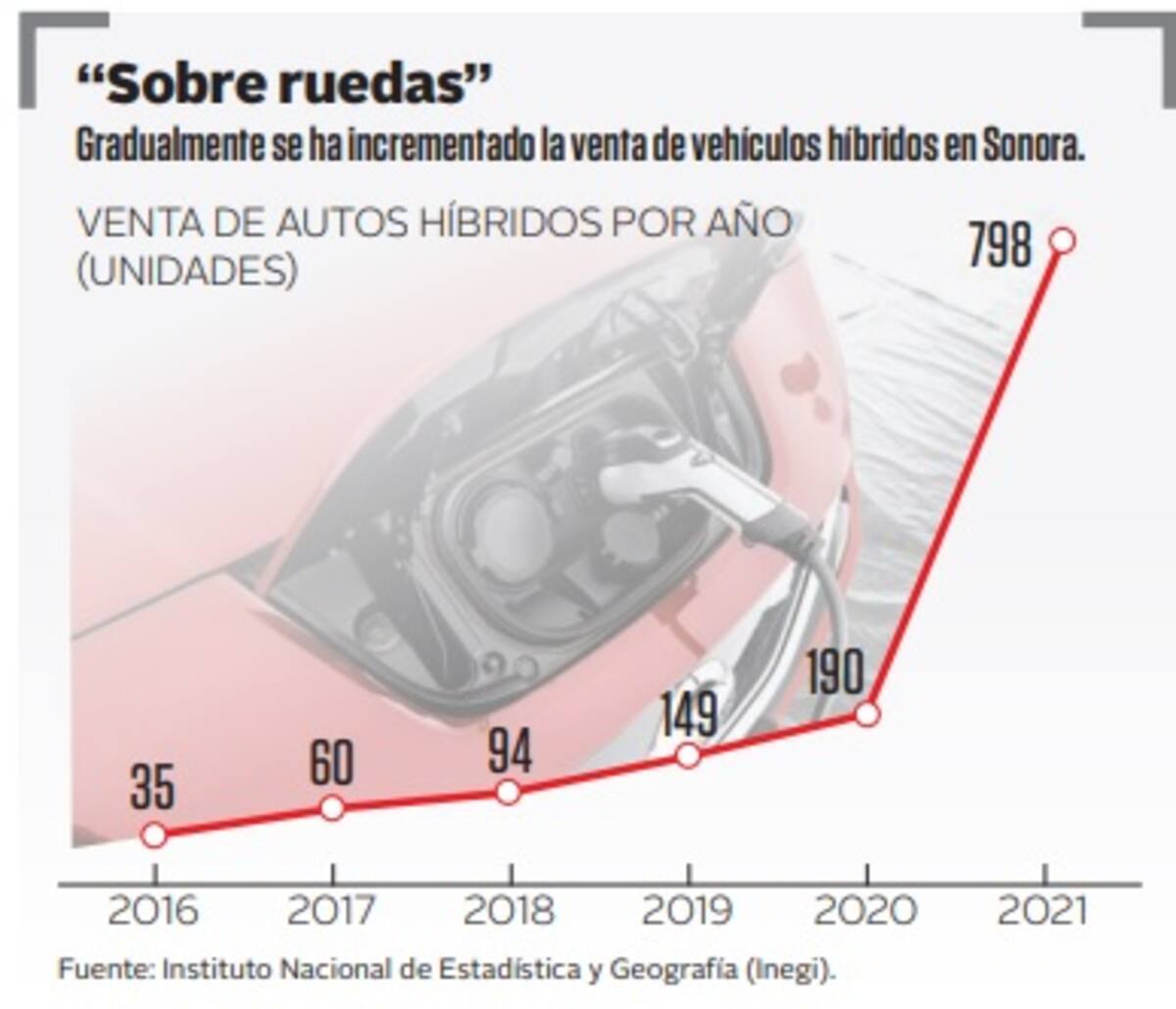 En 2016 cuando el Inegi empezó a contabilizar la venta de este tipo de carros, la entidad registró una venta de 35, en 2017 subió a 60, en 2018 la tendencia al alza continuó al terminar con 94, en 2019 se tuvo 190 y en 2021 llegó a 798.
