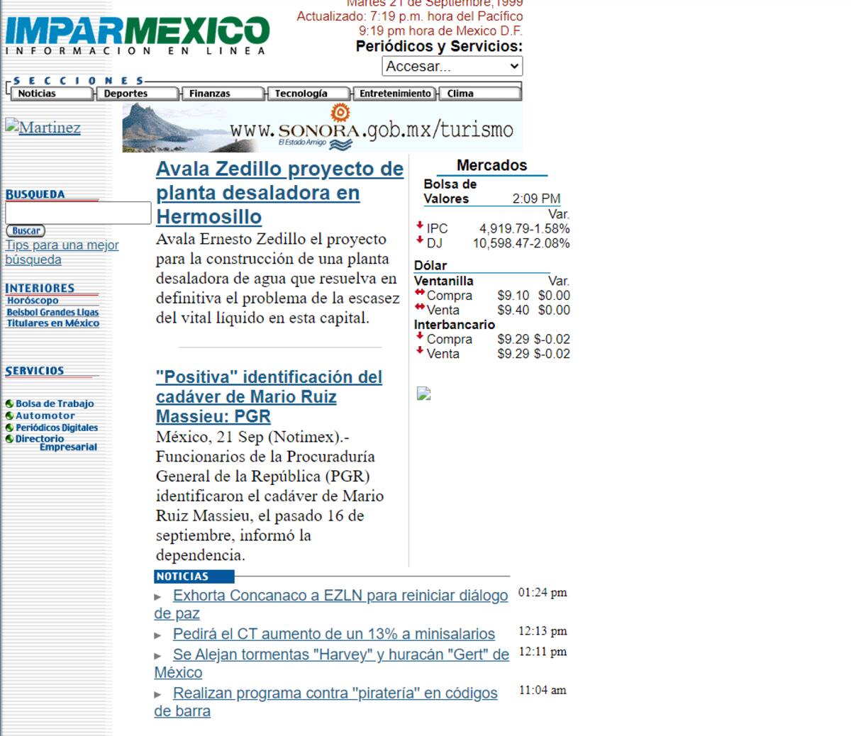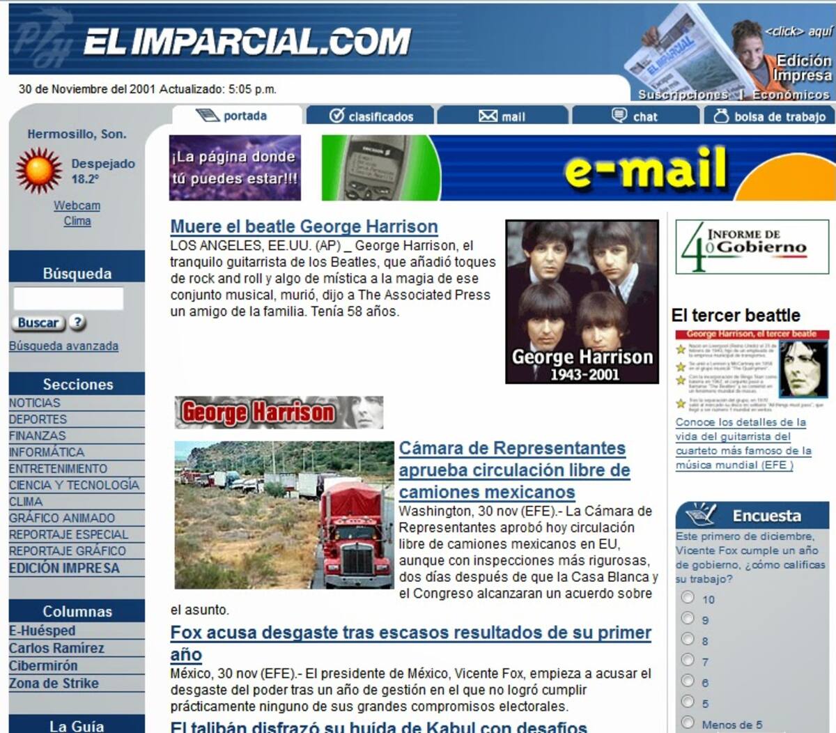 Aunque el portal aún no contaba con un concepto de interactividad, EL IMPARCIAL logró su objetivo: Ser de los medios pioneros en incursionar en la creación de páginas web.