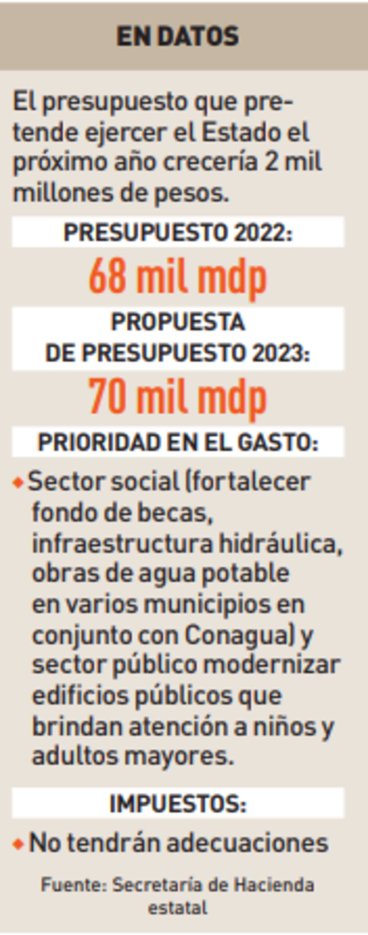 El presupuesto estatal de 2023 será de 70 mil millones de pesos.