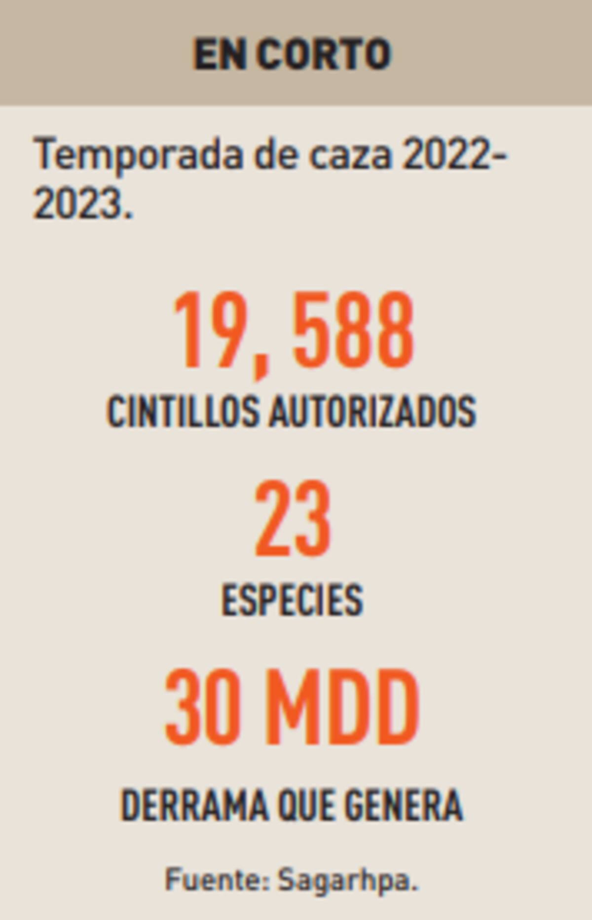 HERMOSILLO, Sonora.- Un total de 19 mil 588 cintillos para 23 especies autorizó la Secretaría de Agricultura, Ganadería, Recursos Hidráulicos, Pesca y Acuacultura (Sagarhpa) en la temporada de caza 2022- 2023, previendo captar una derrama de alrededor de 30 mdd.