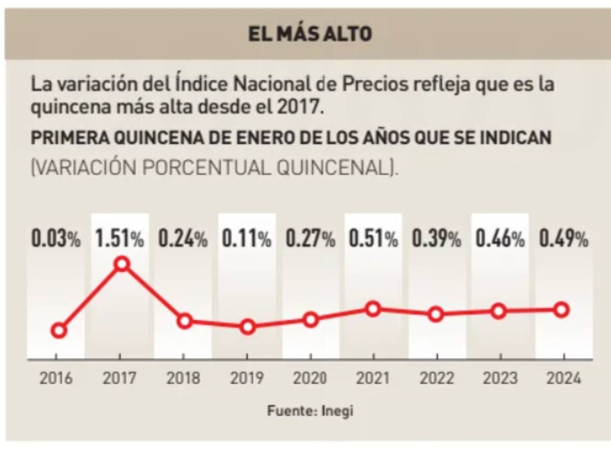 La variación del Índice Nacional de Precios refleja que es la quincena más alta desde el 2017.