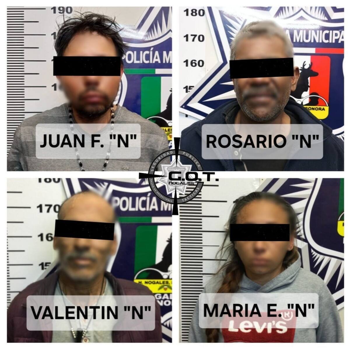 NOGALES.- Por diversos delitos que tenían pendiente con la justicia, tres hombres y una mujer fueron detenidos por elementos del Grupo Operativo Táctico (GOT) adscritos a la Policía Municipal de Nogales.