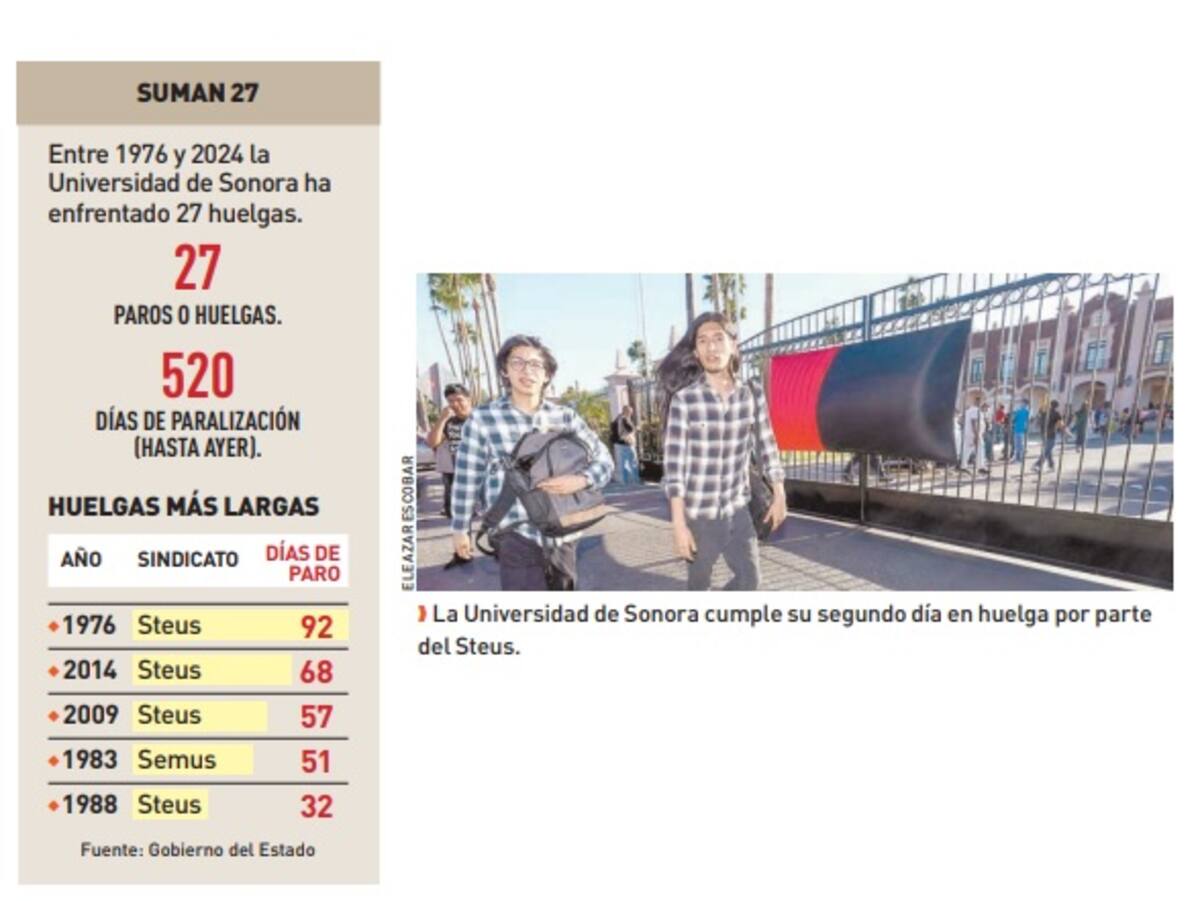 En caso de que la huelga del Steus se ampliara hasta la fecha propuesta, dijo, todavía habría opción de solicitar una segunda prórroga a la autoridad universitaria, siempre y cuando ambas partes estén de acuerdo. “Nosotros vamos a buscar de manera proactiva el diálogo, vamos a buscar una solución, y si los compañeros (Steus) continúan, nosotros podríamos tener un recurso para solicitar otra prórroga o bien, en otro escenario, en caso de que no hubiese acuerdo, estallar en huelga.