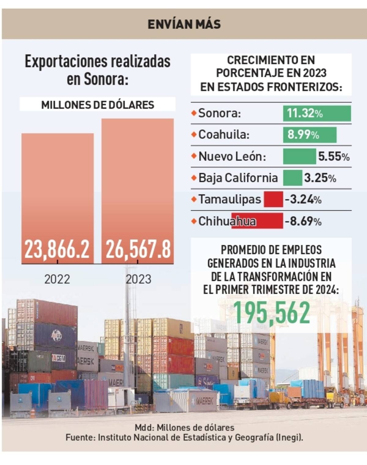 El País en el primer trimestre de este año, dijo que registró un aumento del 1% en las exportaciones del sector industrial y Sonora no se quedó atrás, pues fue uno de los estados fronterizos con más crecimiento por la llegada de inversión extranjera.