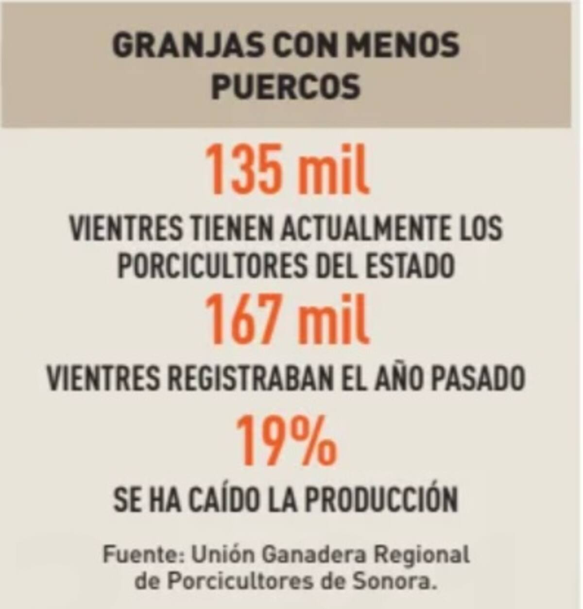 La carne de cerdo de Estados Unidos, la pierna y espaldilla, es una competencia desleal, y ya hemos hablado con el gobernador (Alfonso Durazo Montaño) quien se comprometió a defender la situación”, finalizó.