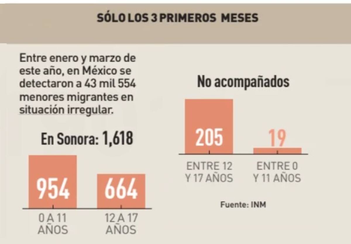 En lo que va del 2024, nada más por Sonora, se han detectado a 224 niños migrantes solos o no acompañados, de acuerdo con el Instituto Nacional de Migración, una cifra que supera a la del año pasado.