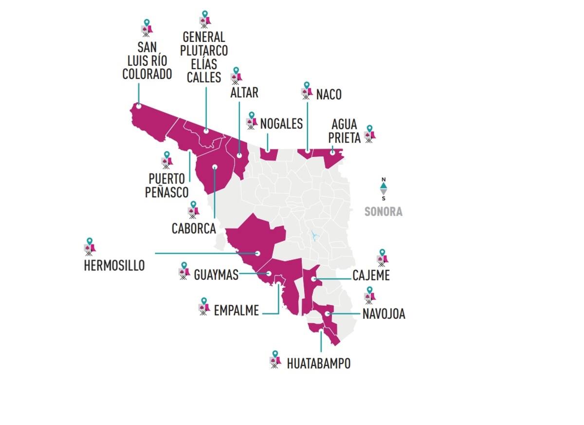Además habrá cuatro en Cajeme, tres en Nogales, dos en San Luis Río Colorado, Agua Prieta, Guaymas, Navojoa y una en cada uno de los municipios de Caborca, Altar, Plutarco Elías Calles, Puerto Peñasco, Naco, Empalme y Huatabampo.