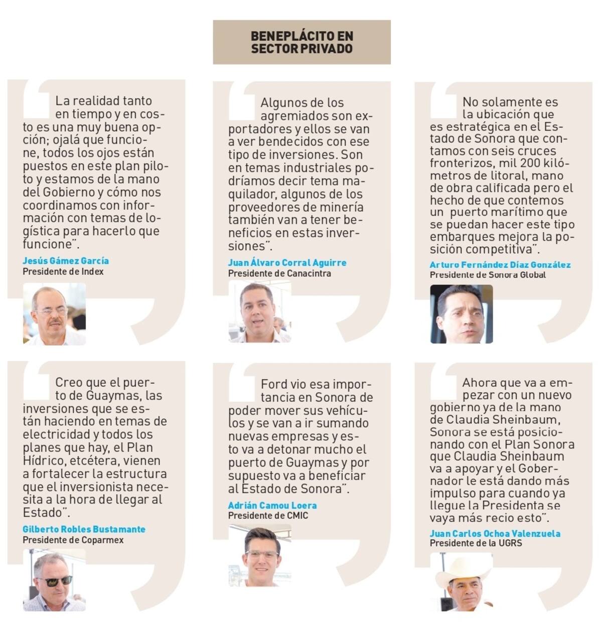 “Es un gran ejemplo de la coordinación, el trabajo de Gobierno y empresa privada donde se hacen inversiones para que podamos recibir y exportar productos que se fabrican en Sonora, veo algo muy importante, un paso muy grande con una empresa internacional”, expresó.