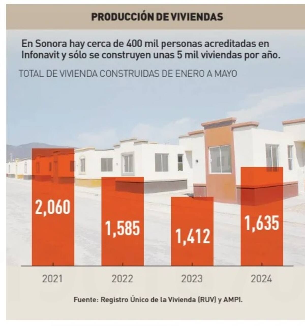 En Sonora hay cerca de 400 mil acreditados en el Infonavit y cada año se construyen cerca de 5 mil viviendas con un costo de 2 millones hasta los 9 millones de pesos, indicó Rodrigo Peña Porchas, vicepresidente nacional de Relaciones Institucionales de la Asociación Mexicana de Profesionales Inmobiliarios (AMPI).