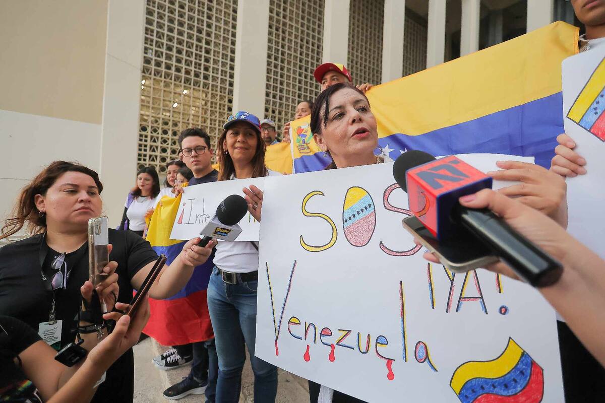 “Queremos que se vaya en paz, que cese la violencia queremos que la comunidad internacional nos escuche, queremos regresar a nuestro país sin temor”, señaló Pablo Medina, otro de los manifestantes.