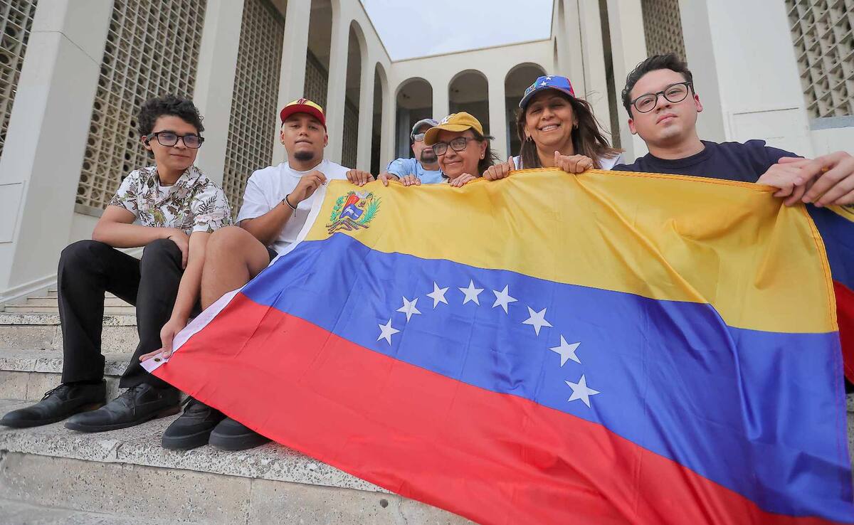 Hermosillo.- “¡Viva Venezuela, Venezuela libre!” gritaron después de entonar su Himno Nacional un grupo de venezolanos que se manifestó en las escalinatas del Museo y Biblioteca de la Universidad de Sonora para pedir claridad luego del proceso electoral del pasado domingo 28 de julio.