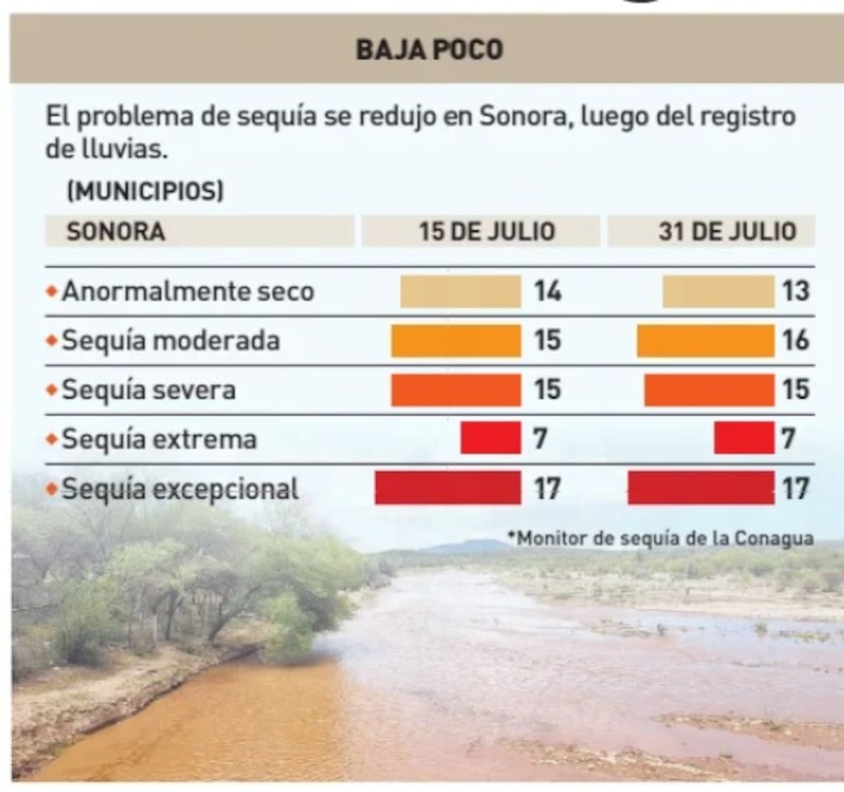 Esto es lo que dice el reporte de Conagua ante la condición de sequía en territorio sonorense y como ha contribuido la temporada de lluvias.