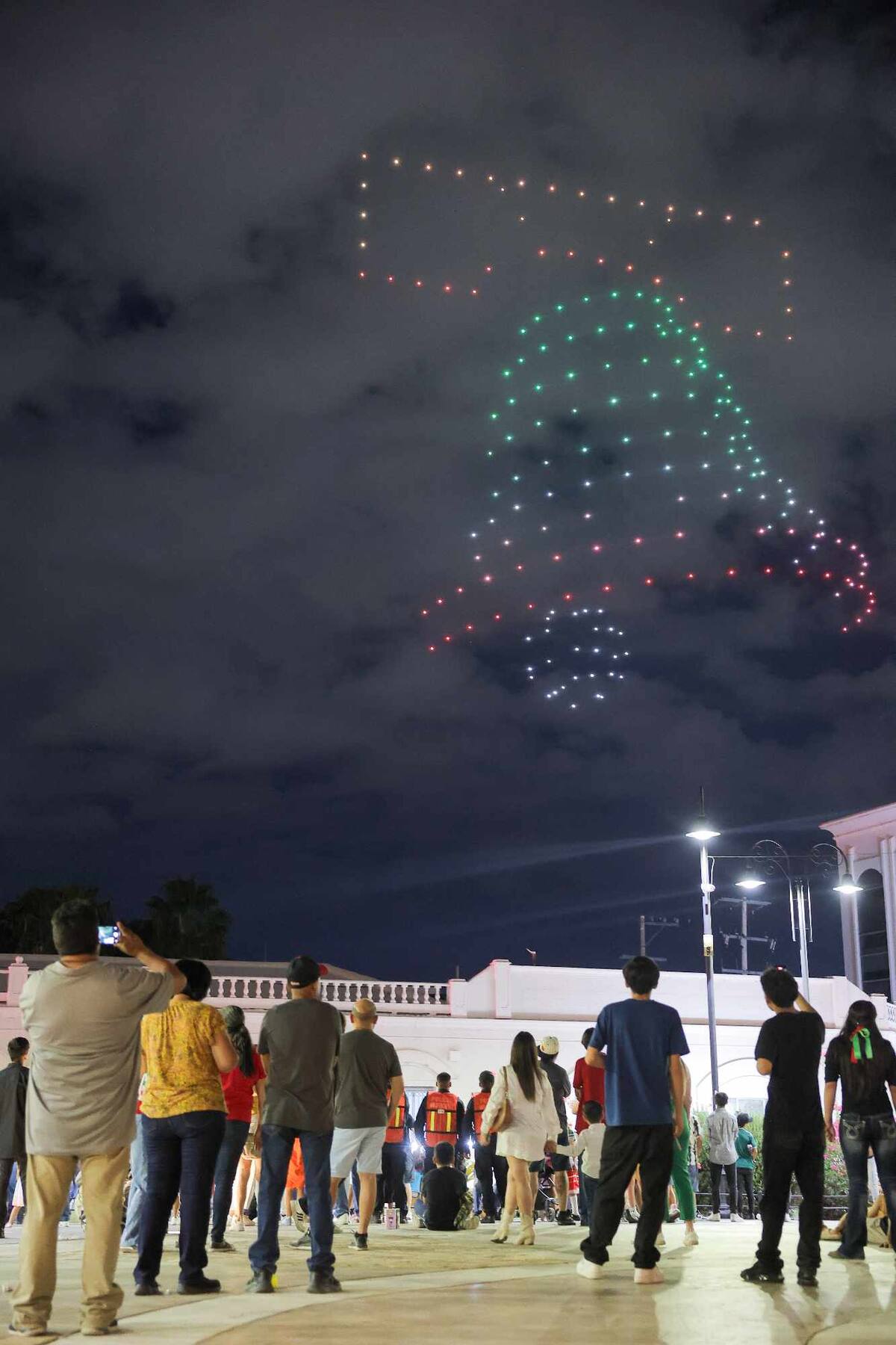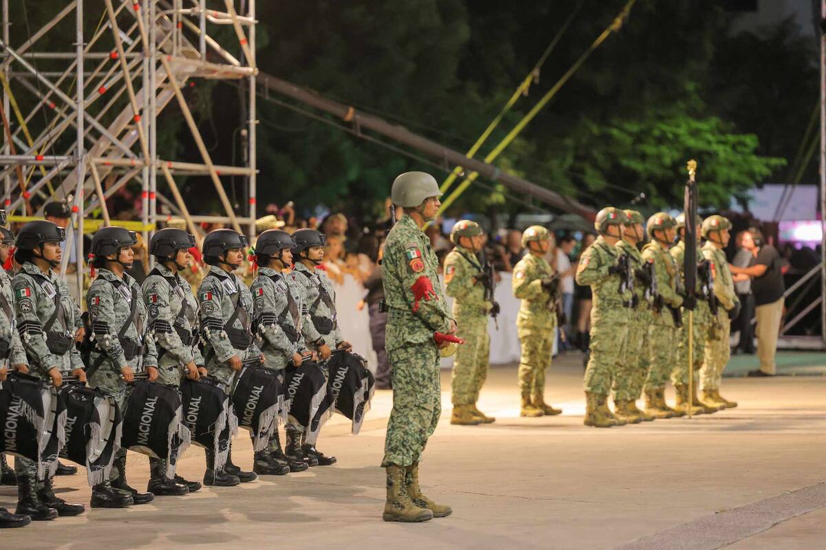 Tras su participación, los asistentes aplaudieron el esfuerzo y participación de la Banda de Guerra del Tercer Batallón de Infantería de las Fuerzas Armadas, para después disfrutar de un espectáculo de drones aéreos que tuvieron el acompañamiento musical de la Banda Sinfónica del Estado de Sonora.