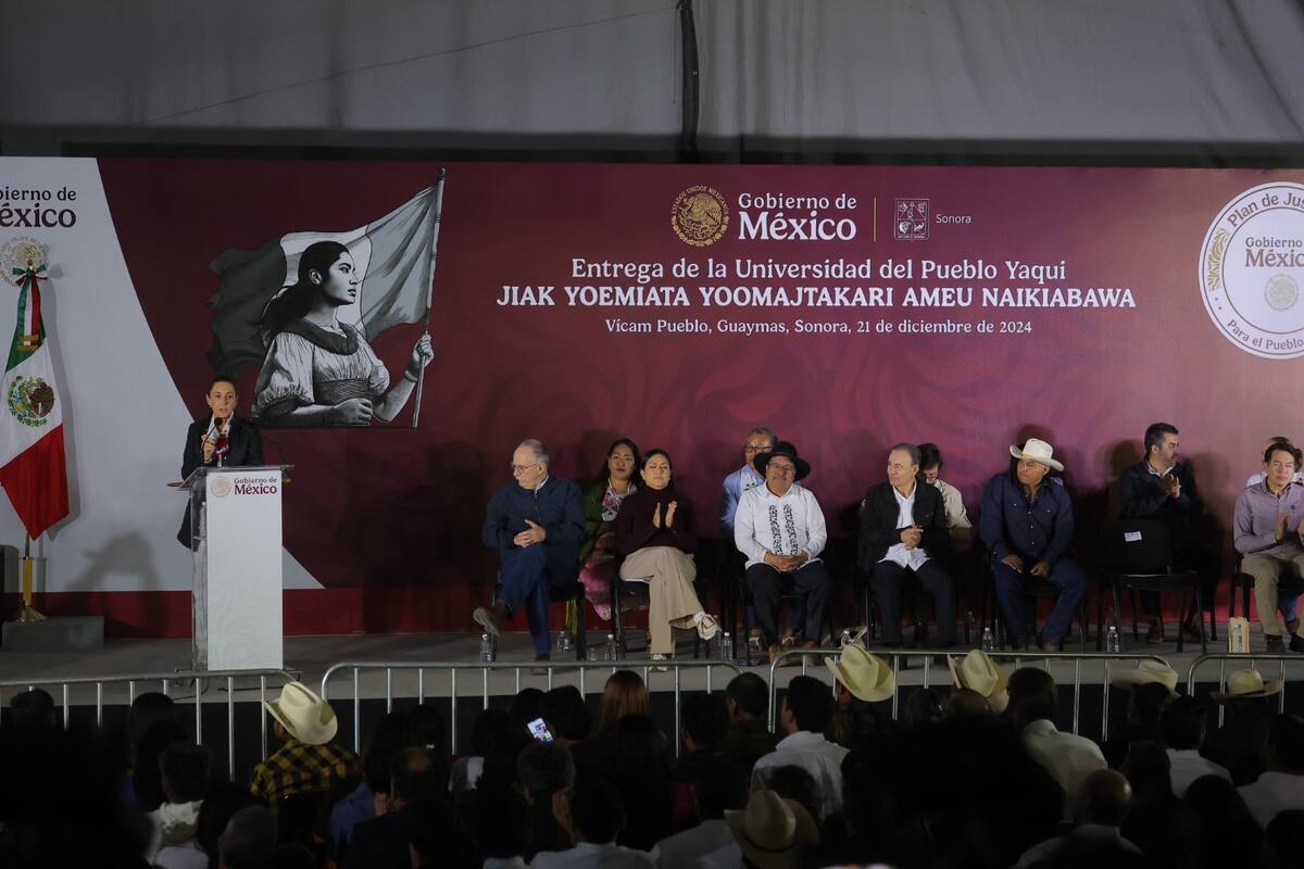 La mandataria realizó un evento en Vícam para inaugurar la Universidad del Pueblo Yaqui y una clínica como parte del seguimiento al Plan de Justicia, pero detalló hace un par de días a GRUPO HEALY en su conferencia mañanera que aún quedarán temas pendientes con la Tribu Yaqui, principalmente de agua.