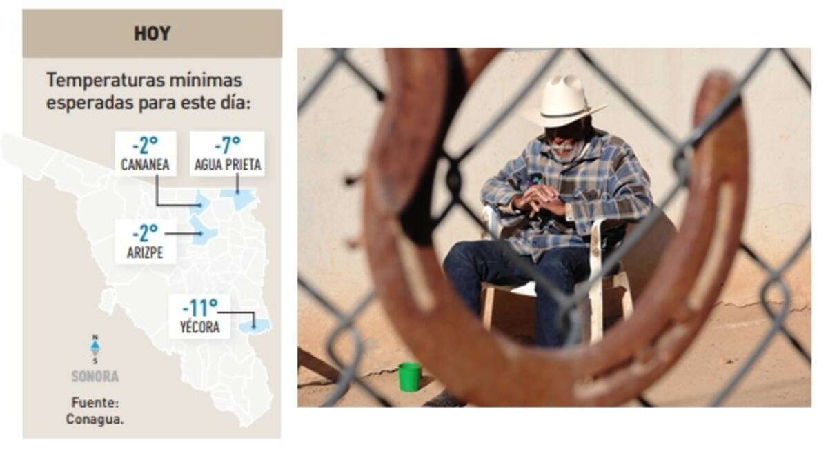 Las temperaturas durante el día se esperan de templadas a cálidas en el Centro y Sur de la entidad y pudieran alcanzar los 30°, mientras que en las zonas altas se esperan hasta -12° en Yécora y -8° en Agua Prieta, según la Comisión Nacional del Agua.