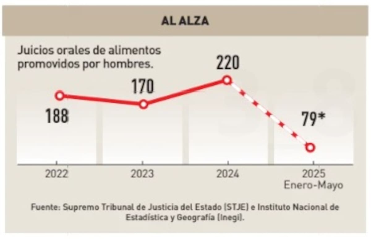 De acuerdo con datos del Supremo Tribunal de Justicia del Estado (STJE), el año pasado cerraron con 220 demandas de hombres que reclamaban alimentos y de enero a mayo de este año suman 79.