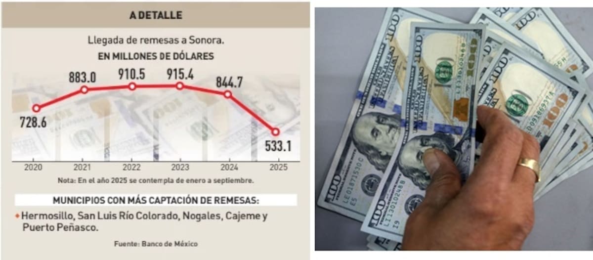 Sonora enfrenta un descenso más notable en remesas durante 2025 en comparación con la baja de 2024