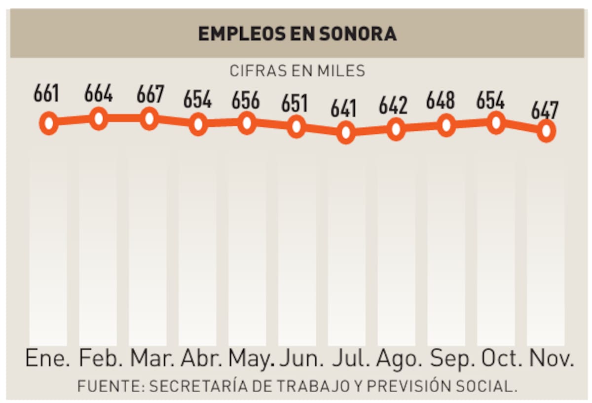 HERMOSILLO, Sonora.- El penúltimo mes de 2025 la entidad cerró con 647 mil 205 empleos formales impulsado principalmente por la industria de la transformación, comercio y los servicios para empresas, personas y el hogar.
