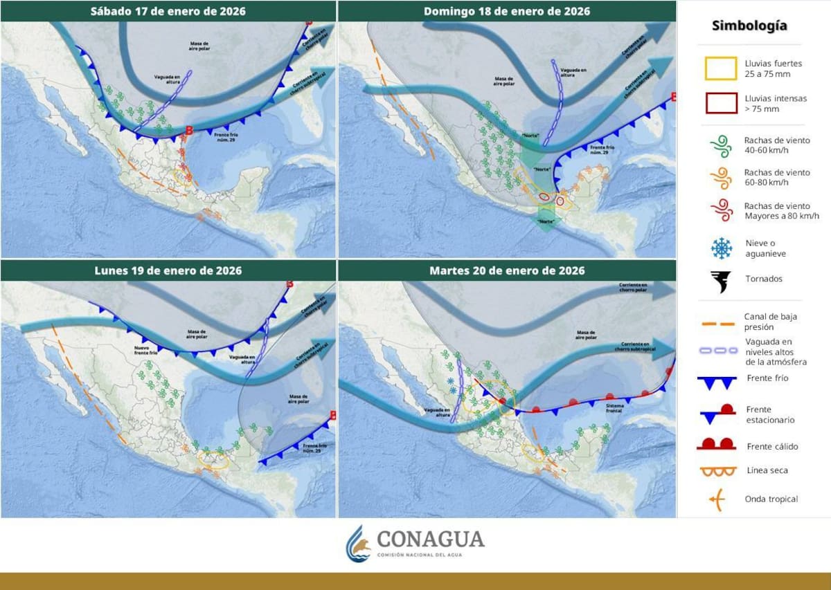 Hacia los días 24 y 25 de enero se prevé el ingreso de un nuevo frente frío, el cual podría provocar un descenso generalizado de las temperaturas, rachas de viento más fuertes y la posibilidad de lluvias aisladas en distintas zonas del Estado. Las autoridades indican que mantendrán el monitoreo constante de este sistema.