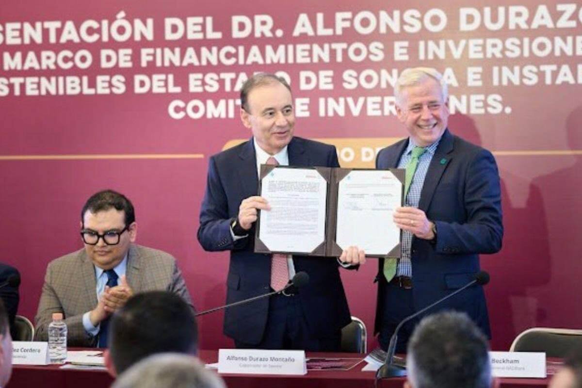 Durante la presentación del Marco de Financiamientos e Inversiones Públicas Sostenibles de Sonora y de la instalación del Comité de Inversiones, Banco Multiva entregó un reconocimiento al gobernador constitucional del estado de Sonora, Dr. Alfonso Durazo Montaño, por la operación financiera realizada durante el ejercicio fiscal 2025, en la cual el banco participó mediante el otorgamiento de un crédito por 875 millones de pesos.