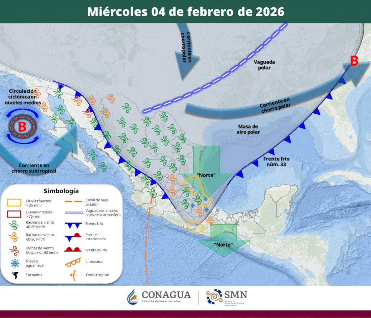 Las rachas podrían alcanzar hasta 70 km/h en el norte y oriente del estado, mientras que para mediados de febrero se prevé el ingreso de un sistema invernal con descenso de temperaturas y probabilidad de lluvias.