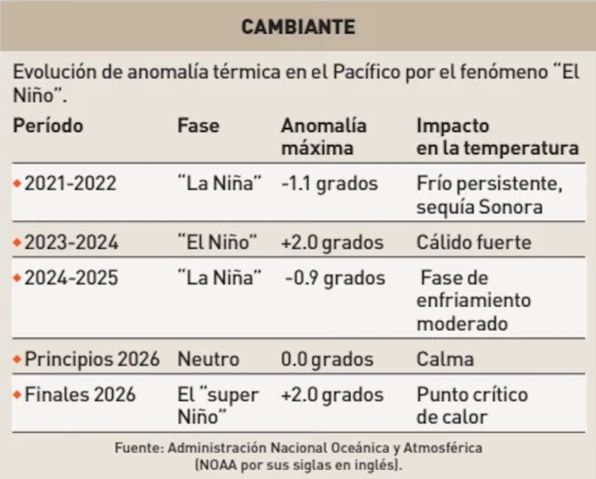 Ante la posible llegada del fenómeno “Super Niño” a Sonora: recomiendan a la población prepararse este 2026 para un verano de calor extremo y un otoño con lluvias intensas