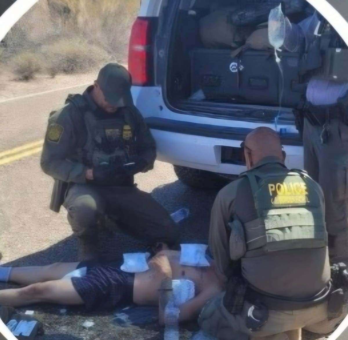 El oficial reveló que elementos de la Patrulla Fronteriza brindaron primeros auxilios a los migrantes y fueron detenidos dos presuntos traficantes. Uno de los migrantes fue trasladado de urgencia a un hospital cercano para recibir atención médica